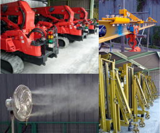 カニクレーン、リフト型クレーン【タテール】、トロリーレースシステム、チェンブロック等の揚重機等を中心とした建設機械や高所作業車のレンタルを致します。イベント用に発電機や、仮設トイレ、ミストファンの貸出しも行っております。